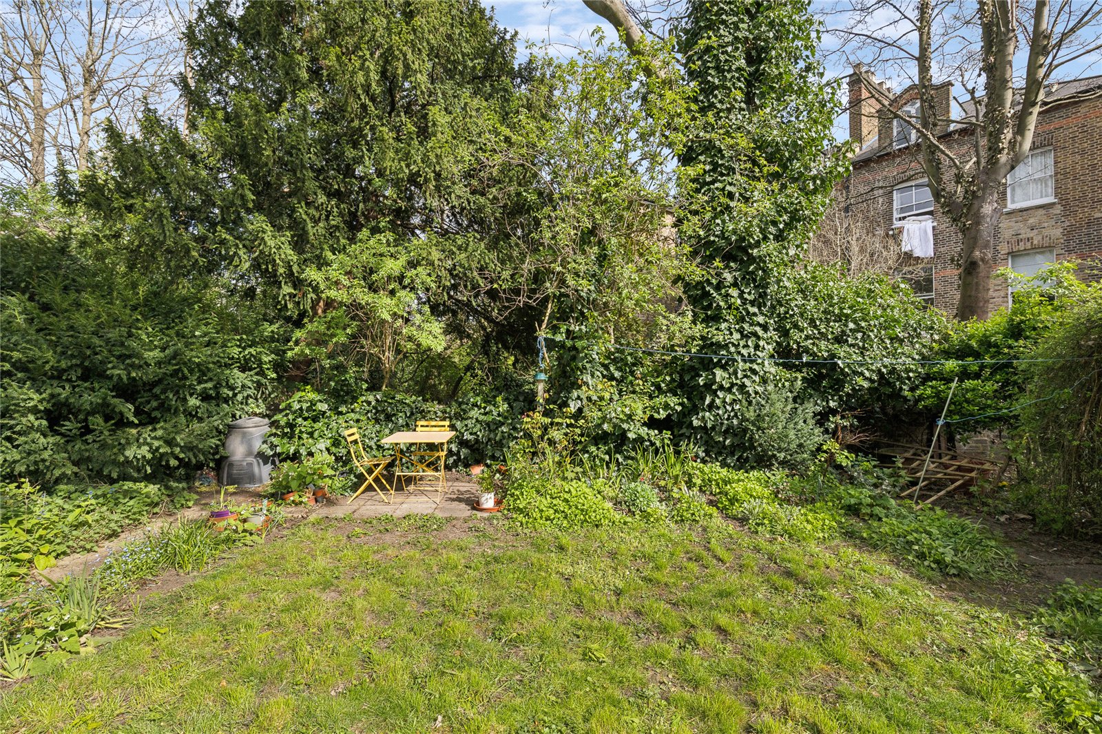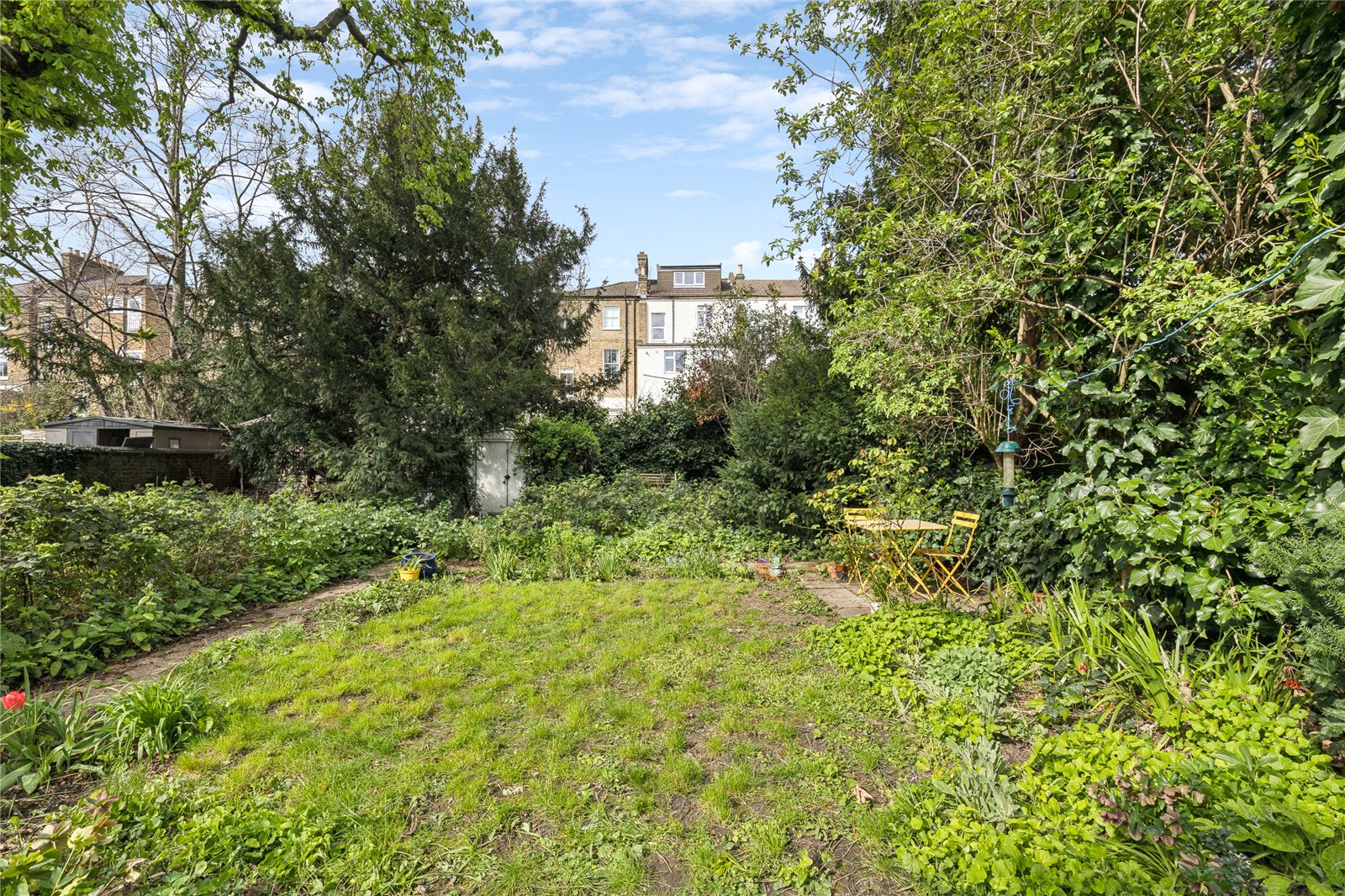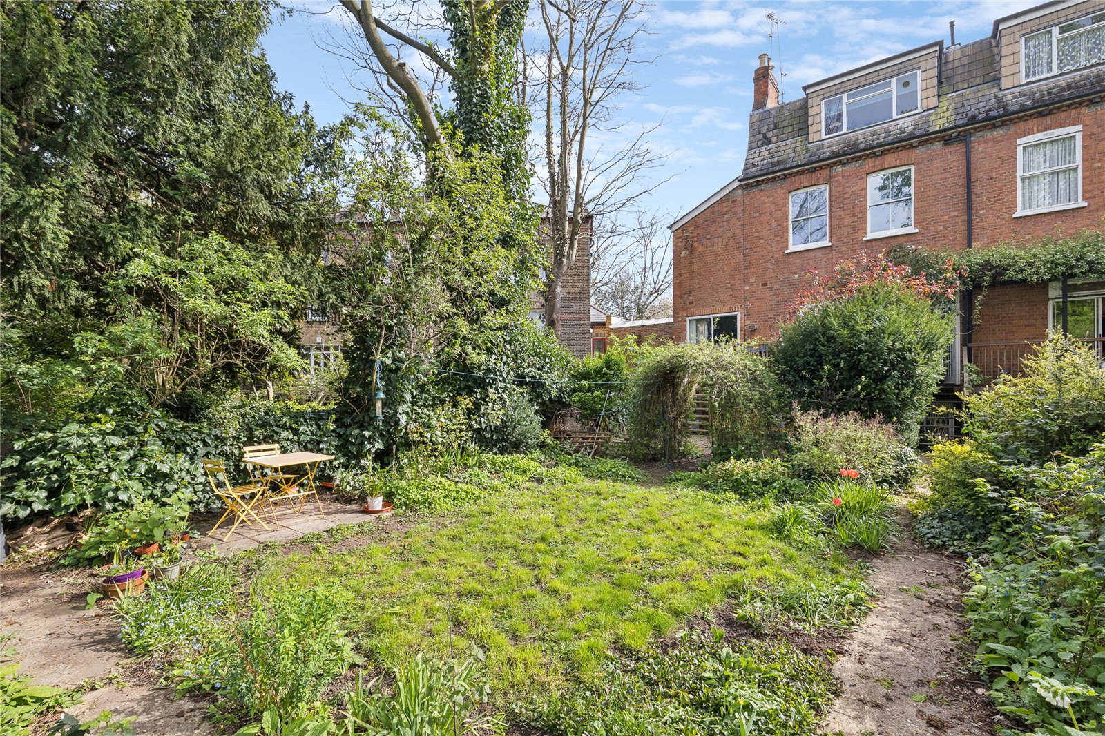 To the rear, residents enjoy access to a beautifully maintained private patch within a large garden, an oasis of greenery with mature planting and seating areas, perfect for outdoor dining or unwinding in warmer months.
